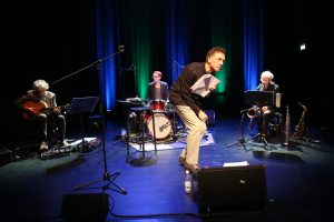 Besetzung: Timo Brunke – Wort, Andreas Krennerich – Saxofon, Boris Kischkat – Gitarre + Looper, Daniel Kartmann – Percussion + Vibrafon